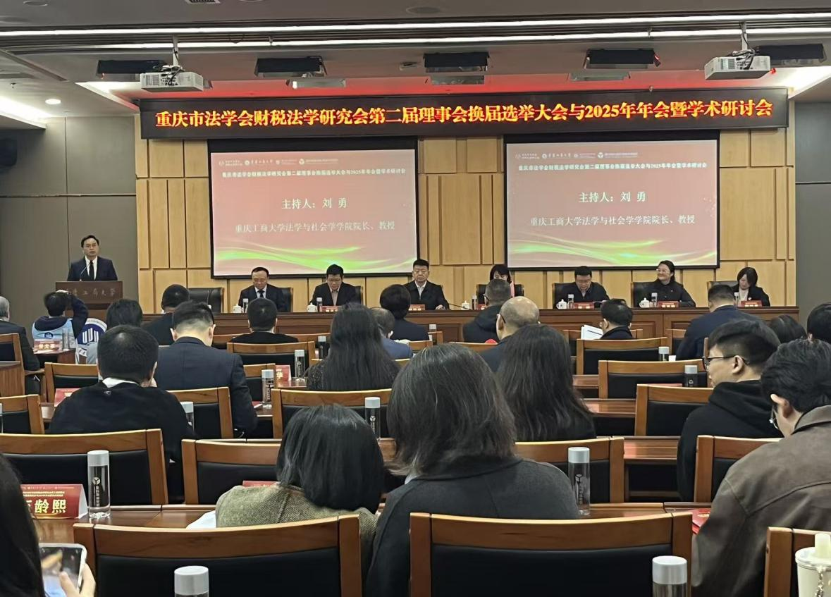 2025年11月8日,由重庆市法学会、重庆市法学会财税法学研究会主办,重庆工商大学法学与社会学学院、重庆市律师协会、盈科瑞诚(重庆)税务师事务所联合承办的重庆市法学会财税法学研究会第二届理事会换届选举大会与2025年年会暨学术研讨会在重庆工商大学举行。会议以“十五五规划前瞻下深化财税体制改革的法治保障”为主题,由重庆工商大学法学与社会学学院院长刘勇教授主持。