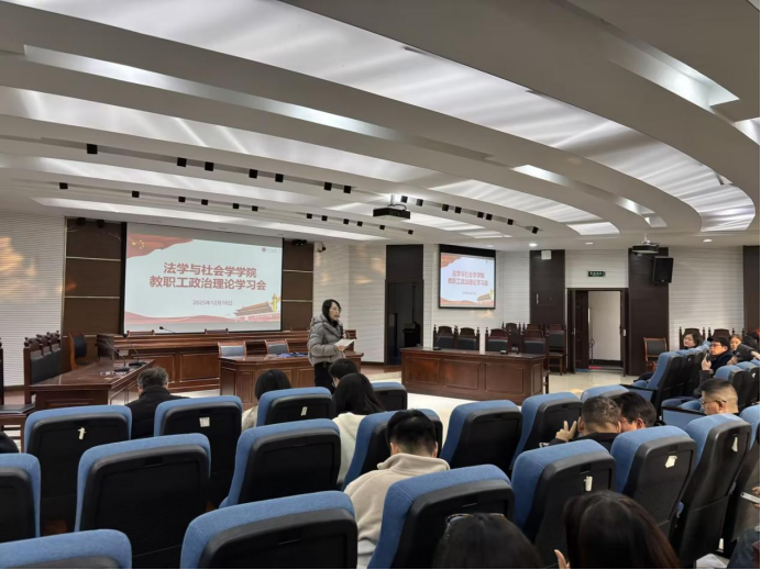 12月18日,法学与社会学学院在慧智楼90426会议室召开了全体教职工大会暨12月政治理论学习会。会议由学院党委书记李莉莎主持。