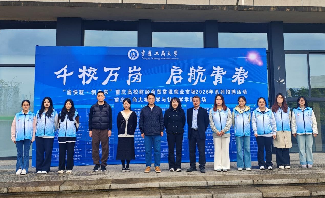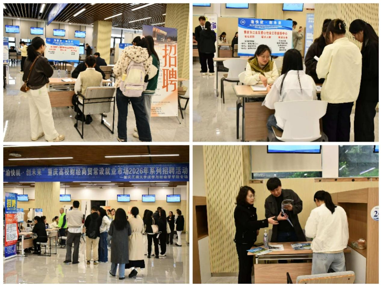 为全力推动毕业生就业工作高效落地,精准对接用人单位人才需求,搭建毕业生与优质企业的双向沟通桥梁,2026年3月31日上午,由重庆工商大学招生就业处、校团委主办,法学与社会学学院承办的“渝快就·创未来”重庆高校财经商贸常设就业市场系列招聘活动暨“双城青才计划——千校万岗”专场招聘会在学生事务中心招聘大厅举办。