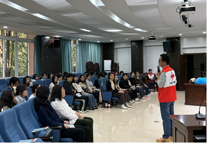 为切实提升社会工作专业学生应急救护能力,夯实专业实践素养,2025年10月23日,在学院模拟法庭(90426教室),法学与社会学学院与重庆市红十字会共同开展了红十字救护员培训。来自重庆市红十字会的资深讲师徐忠诚、王林静担任此次培训的授课教师,23级社会工作专业学生参加了该培训,培训由学院专任教师蒙艺主持。