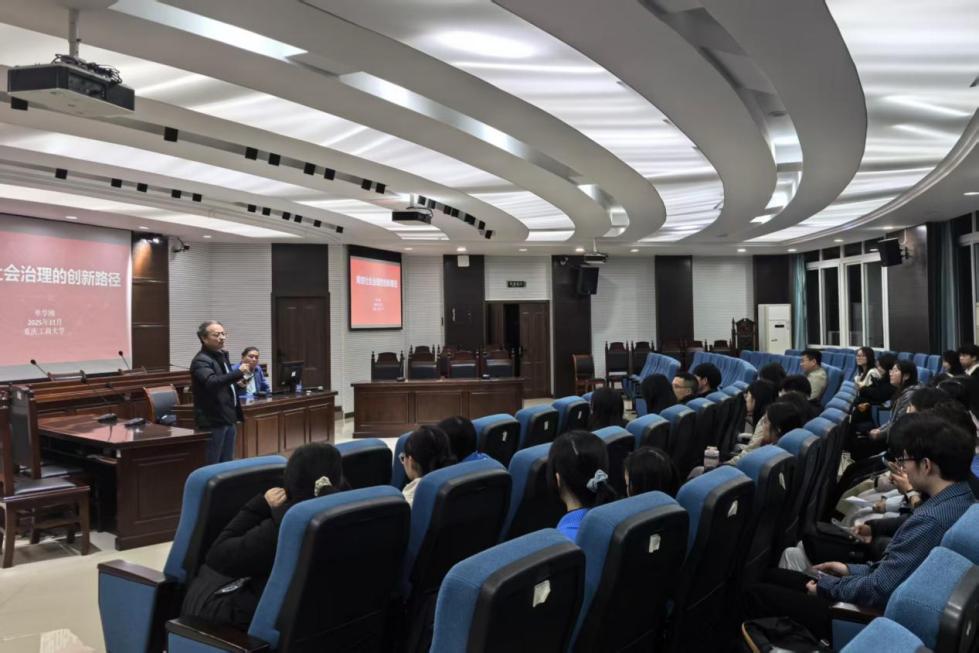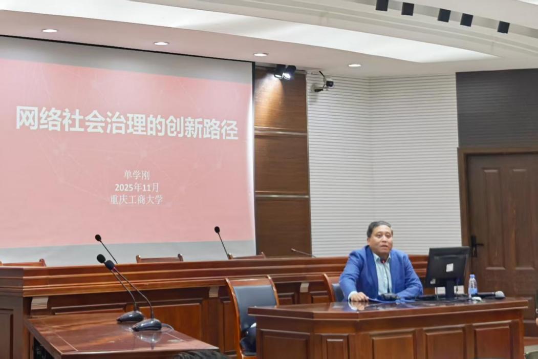 为进一步贴近数字社会快速发展的社会现状,聚焦数字时代治理变革及舆情治理创新,拓展研究生及本科生在智能时代的科研视野与数字技能,2025年11月27日,学院邀请到人民网舆情中心副主任单学刚教授赴我院举办讲座。讲座在慧智楼426模拟法庭开展,学校党委宣传部部长杨维东、学院副院长侯明喜、刘成晨老师、2006级校友李祥平及学院研究生及本科生共60余人参与本次讲座。会议由侯明喜主持。