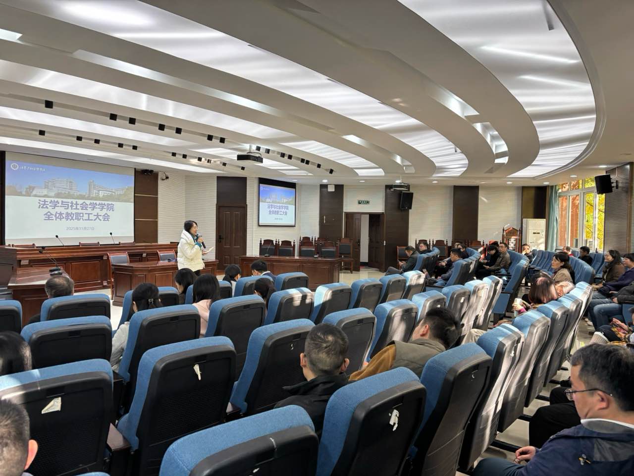11月27日,法学与社会学学院在慧智楼90426会议室召开了全体教职工大会暨11月政治理论学习会。会议由学院党委书记李莉莎主持。