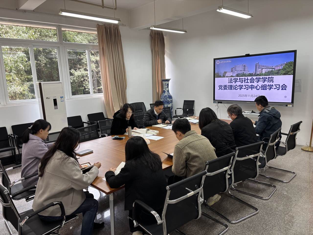 11月24日,法学与社会学学院在慧智楼90407会议室召开了2025年第6次党委理论学习中心组学习会,学院全体党政领导、党委委员参会。会议由学院党委书记李莉莎主持。