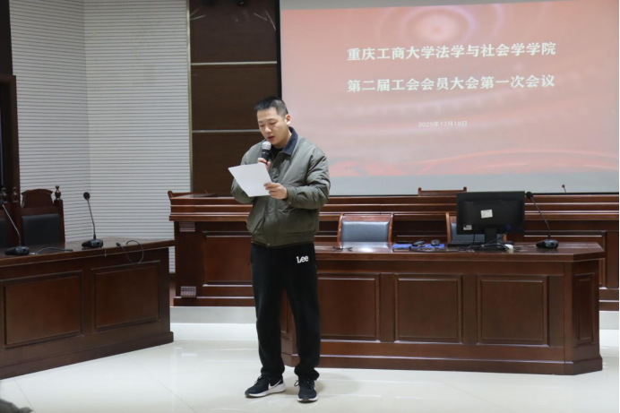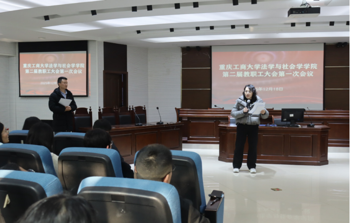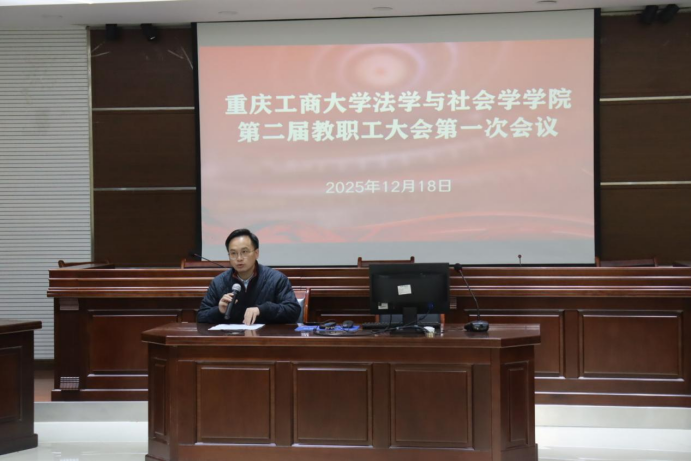 12 月 18 日,法学与社会学学院第二届教职工大会及工会会员大会第一次会议在慧智楼 90426 模拟法庭隆重召开。学院领导班子成员、全体教职工及工会会员参加会议,会议由学院党委副书记陈琛主持。