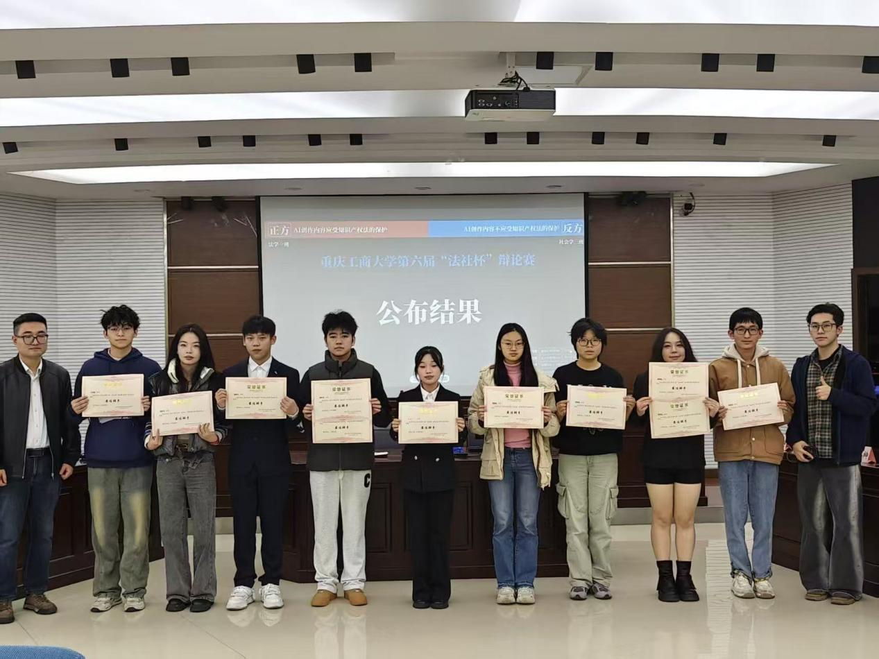 2025年11月16日,“法社杯”辩论赛决赛在南岸校区慧智楼模拟法庭圆满举行。25级法学一班与25级社会学三班两支强队围绕“AI创作内容应受/不应受知识产权法的保护”这一核心议题展开终极交锋。