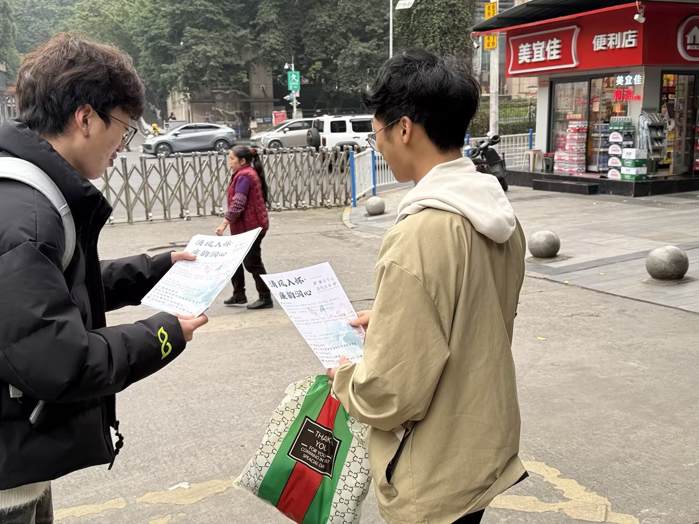 活动当天,大学生廉洁文化研究会的成员们来到学府苑小区,手持精心制作的清廉知识传单向过往行人发放。志愿者们不仅主动向行人介绍廉洁宣传的目的和内容,还耐心细致地为他们讲解传单上的廉洁知识。许多行人驻足聆听,纷纷表示受益匪浅,对廉洁文化有了更深刻的认识。