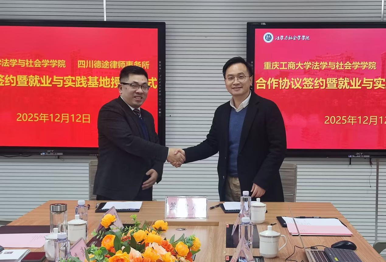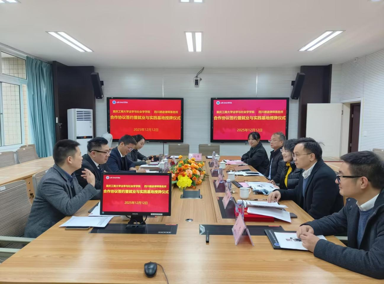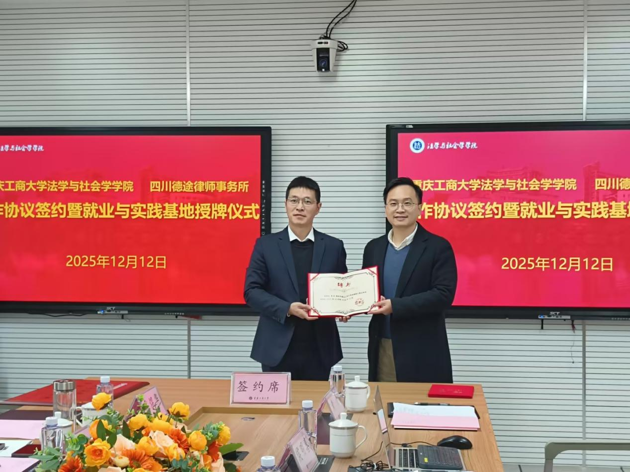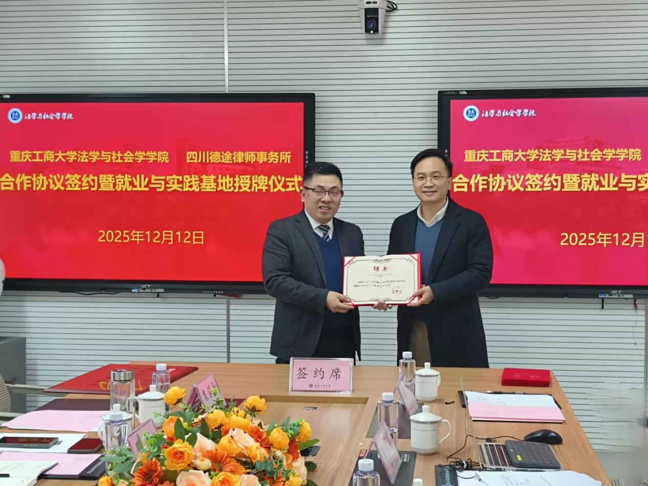 12月12日,法学与社会学学院与四川德途律师事务所合作协议签约暨就业与实践基地授牌仪式会议在慧智楼90429会议室顺利举行。四川德途律师事务所高级合伙人、主任聂华,高级合伙人、副主任廖涛,高级合伙人、副书记、副主任李文鹏,行政办公室主任袁煜华,学院党委书记李莉莎、院长刘勇、副院长侯明喜、法学系主任公杰、综合办公室主任黄倩参加此次会议。会议由刘勇主持。