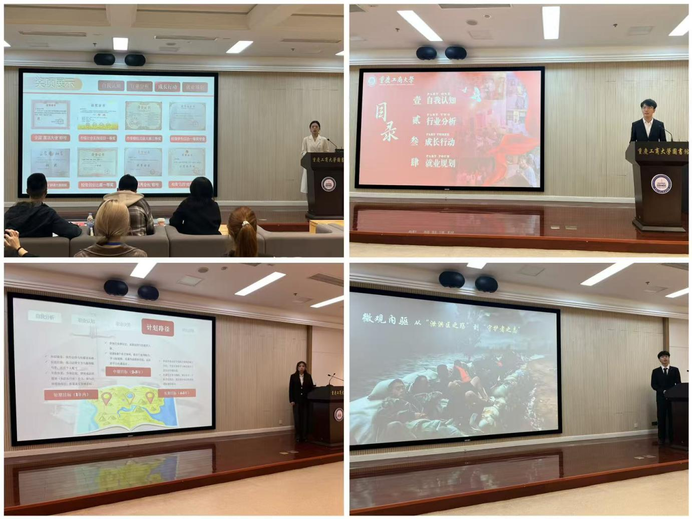 为引导青年学子立足自身特质与专业所长,深化自我认知、明晰职业方向,系统提升职业规划能力与就业核心竞争力,2025年11月7日,法学与社会学学院第三届学生职业规划大赛院级决赛在图书馆视听阅览室成功举办。本次大赛由学院分团委主办,邀请碧桂园服务重庆区域人力资源经理王超、中移物联网有限公司人力资源部胡誉、法学与社会学学院党委副书记陈琛共同组成评委团。